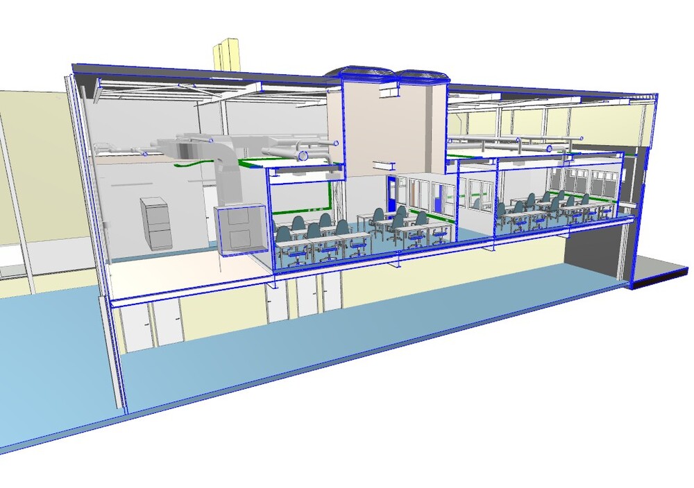 Op de eerste verdieping van het bestaande pand wordt een nieuwe indeling aangebracht. De installaties worden aangepast en opnieuw ingericht, afgestemd op de nieuwe functie van de ruimtes. De werkzaamheden omvatten onder meer installaties voor instructielokalen, spreekkamers en kantoorruimten.